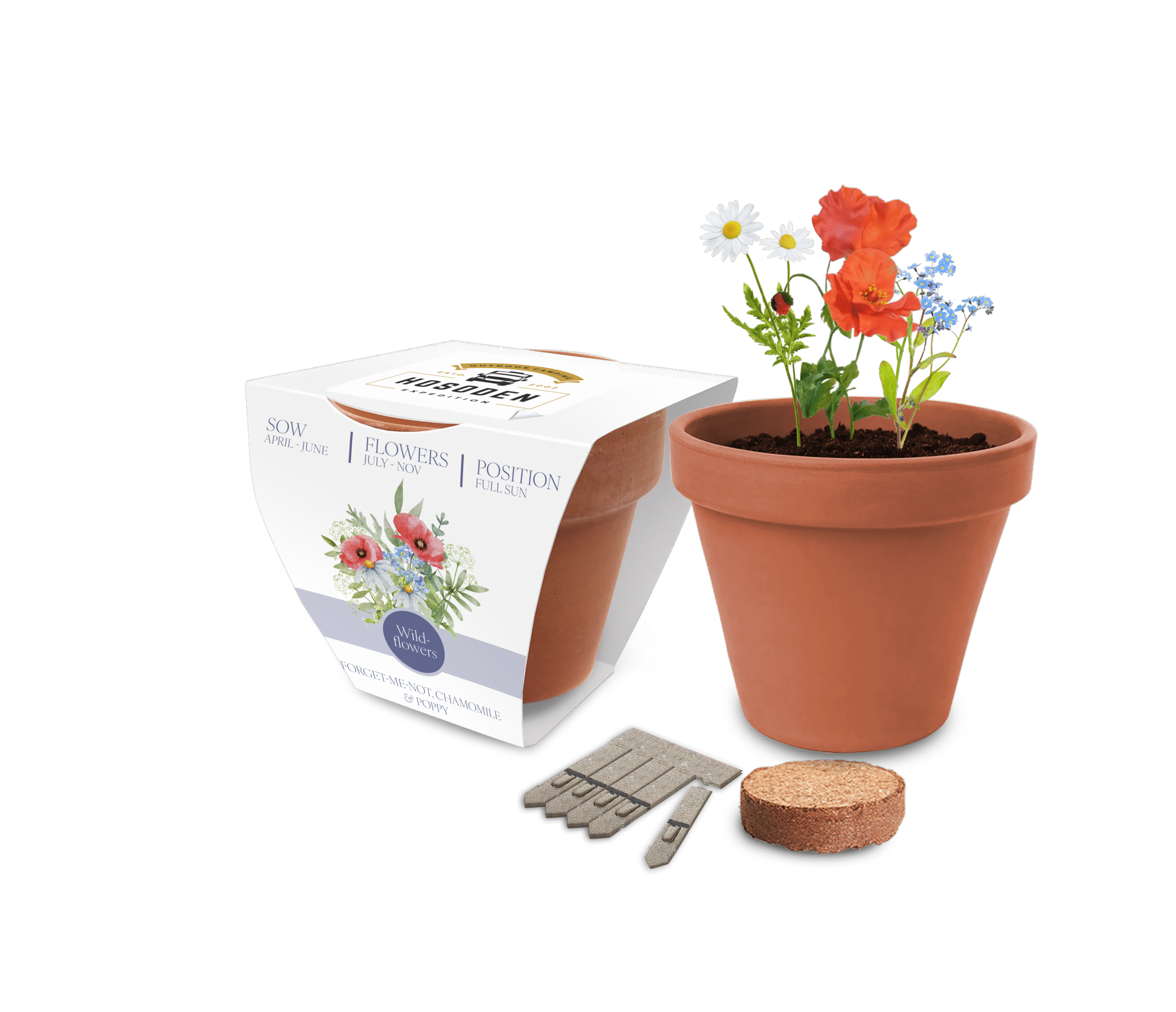 Seed options: Wildflowers, Herbs, Fruit & veg, Sunflower, Poppy and Forget-me-not.