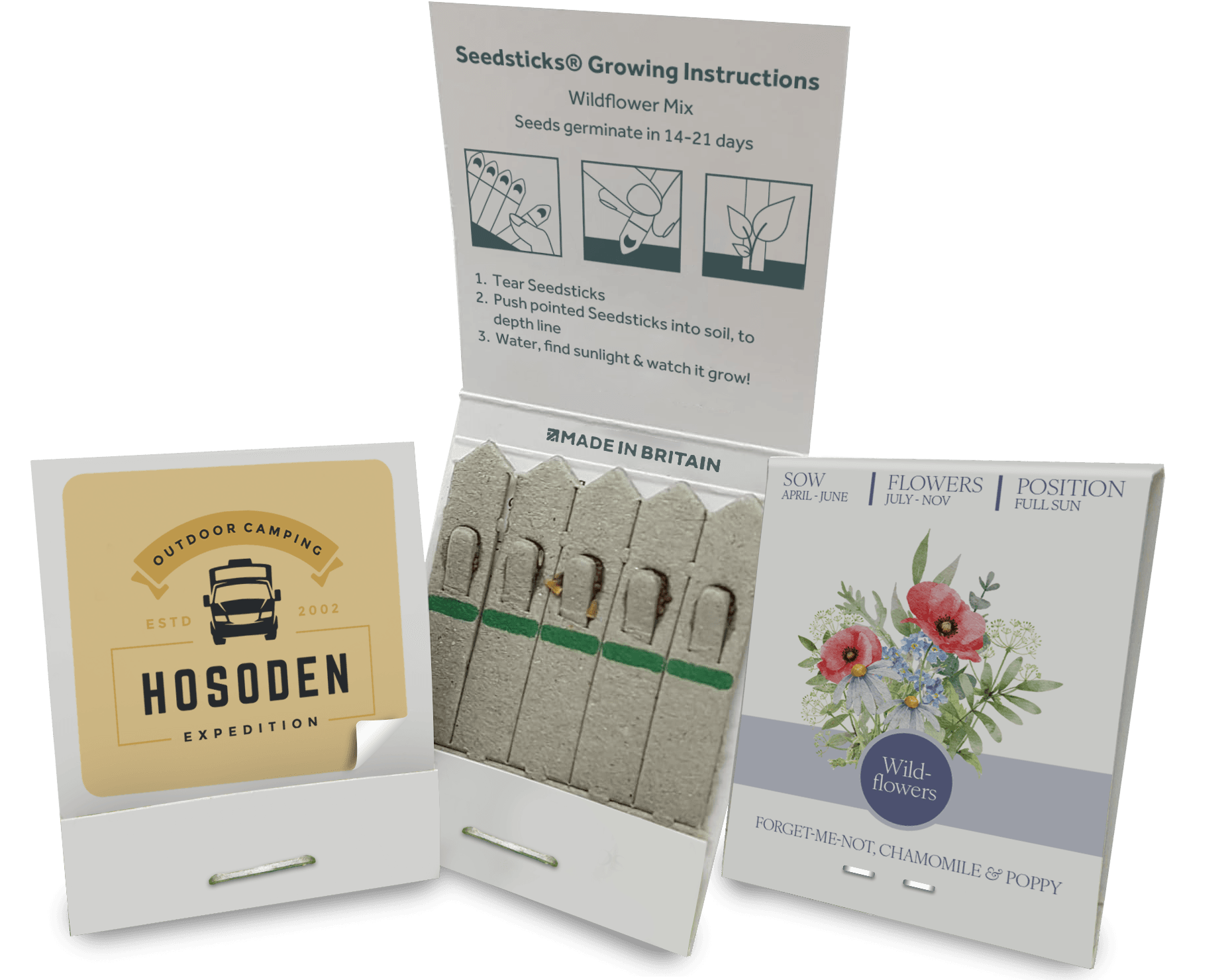 Seedsticks® are our most popular range of promotional seeds. With the same format as a book of matches, but rather than a regular matchhead, we use seeds!